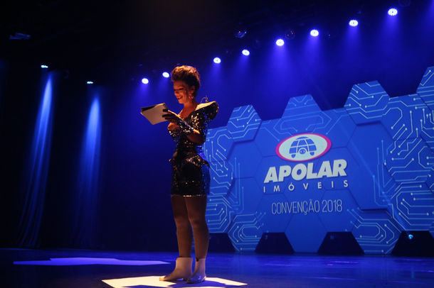 Criei o projeto de projeção mapeada e conteúdo de vídeo para as 4 horas de convenção da imobiliária Apolar de 2018. Fiz a operação no dia do evento, tudo de forma dinâmica e com controle personalizado. Também projetei o cenário, construído em módulos de isopor.